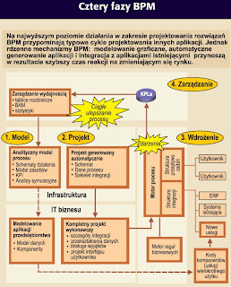 Jednak dzisiaj w obszarze BPM widać tendencje do upakowywania tych wszystkich elementów w ramach zestawu BPM - drogą partnerstwa, OEM czy przejęć. Ten trend rodzi konflikt pomiędzy dostawcami zestawów BPM a dostawcami narzędzi modelowania, rozwiązań BAM i integrującej warstwy pośredniczącej - każdy z nich chciałby opisywać BPM na swój sposób.